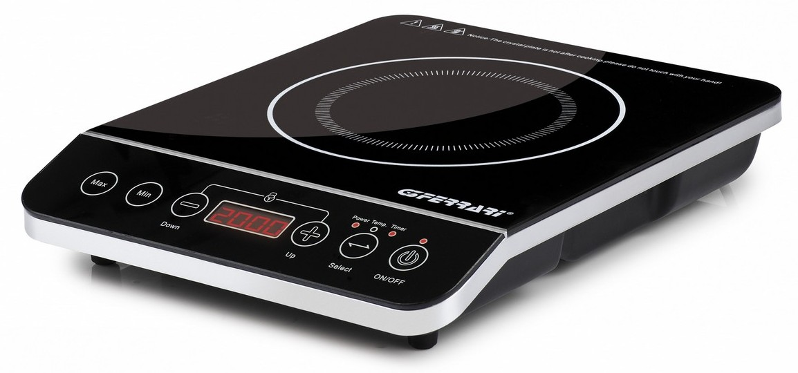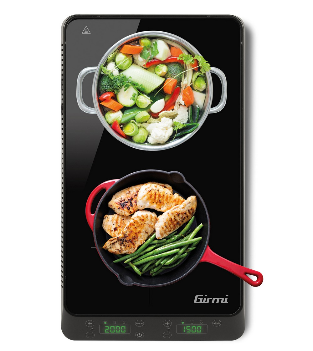 Profi, indukciós dupla főzőlap a G3Ferrari kínálatában, a HI-TECH CHEF G10047. Miért is jó az indukciós főzőlap? Egész egyszerűen azért mert mágneses elven a ráhelyezett edényt melegíti minden ponton egységesen úgy, hogy maga a főzőlap nem is melegszik. Előnye, hogy a legkisebb melegítési veszteség mellett a leghatékonyabb energia felhasználást biztosítja. Két különböző méretű főzőfelületet tartalmaz, melyek minimum 8cm-es és maximum 26 cm-es edénnyel használható. Esztétikus lakk fekete színű főzőlap digitális kijelzőkkel. A két főzőfelület teljesítménye és elméleti hőmérséklete egymástól függetlenül állítható mivel nem melegítik egymást az indukciós működés miatt.